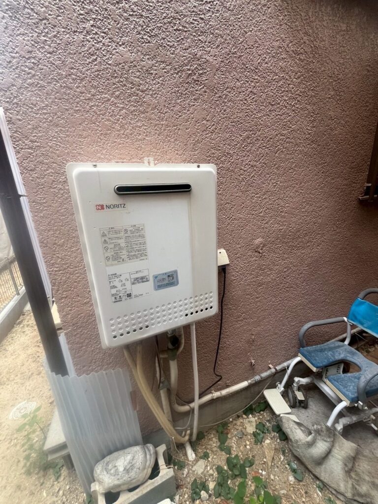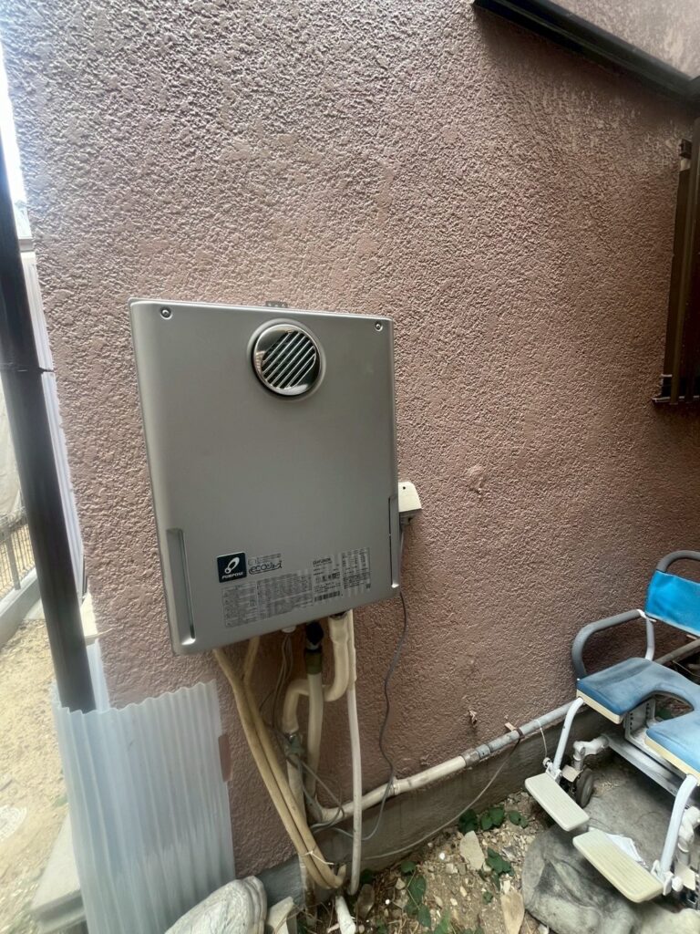 神戸市の長田区の戸建て住宅で使用されていた給湯器は、外装に経年劣化が見られ、お湯が出るまでに時間がかかる状態でした。